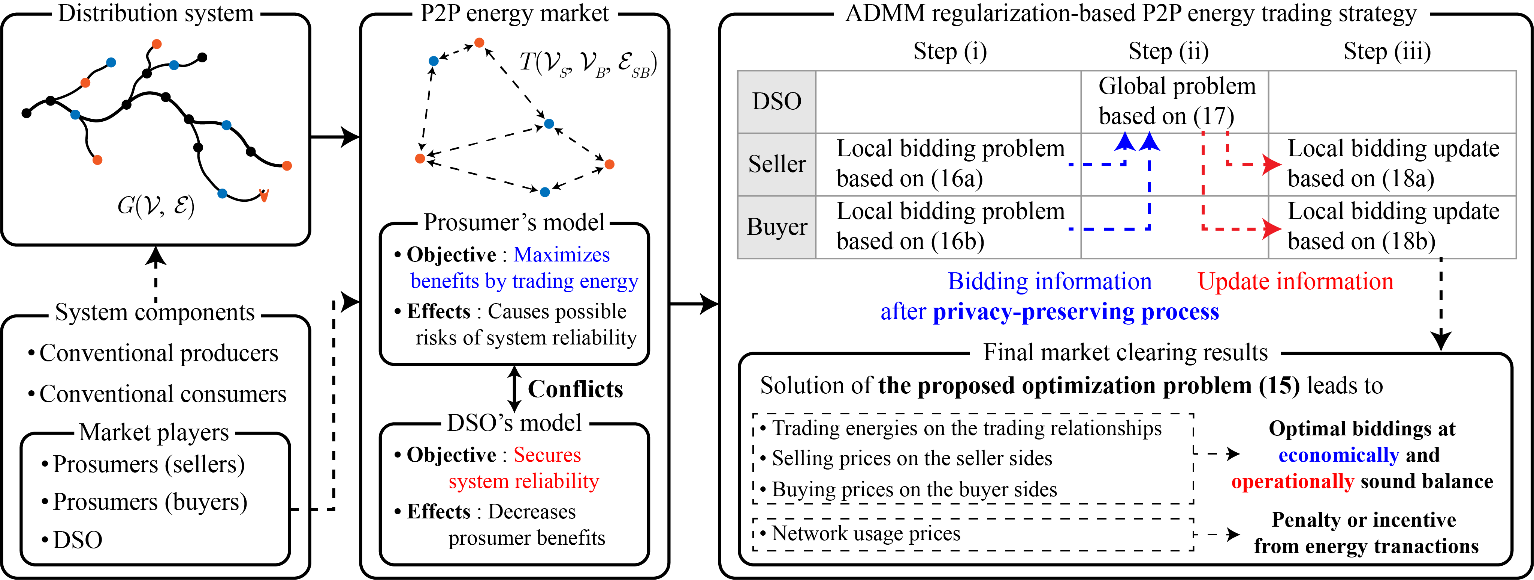 Fig.1. Overall schematic diagram of the proposed security-constrained P2P energy trading strategy.