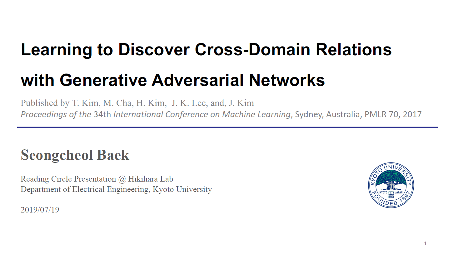 Presented “Introduction of DiscoGAN” along with the study on theoretical background of GAN algorithm.
