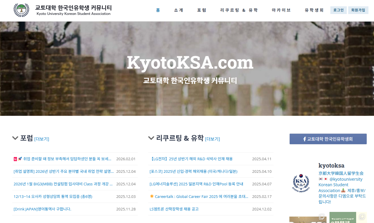 Built a student community site for Kyoto University Korean Student Association. The project was built with WordPress (Framework), AVADA (Front Theme), and Hostinger (DB, Host Server).